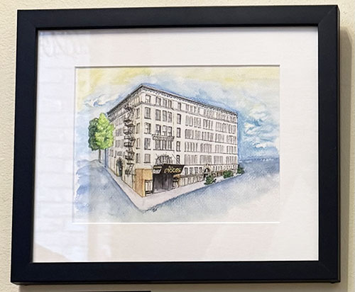 Watercolor of Seattle historic district theatre
