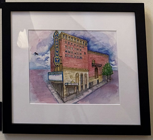 Original watercolor, pencil & pen on paper, 9″ x 6.5″ approx. image size. On cold press archival paper mounted on acid free materials. Framed with simple black frame and museum glass.